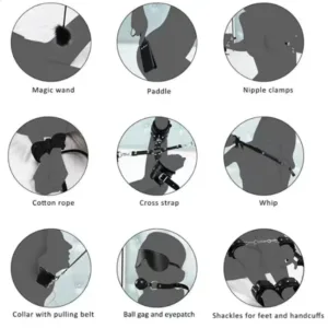 Sensory Dominance: Many full sets include a blindfold or gag to minimize the submissive’s senses, heightening their anticipation and making every touch or command from the mistress feel more intense.