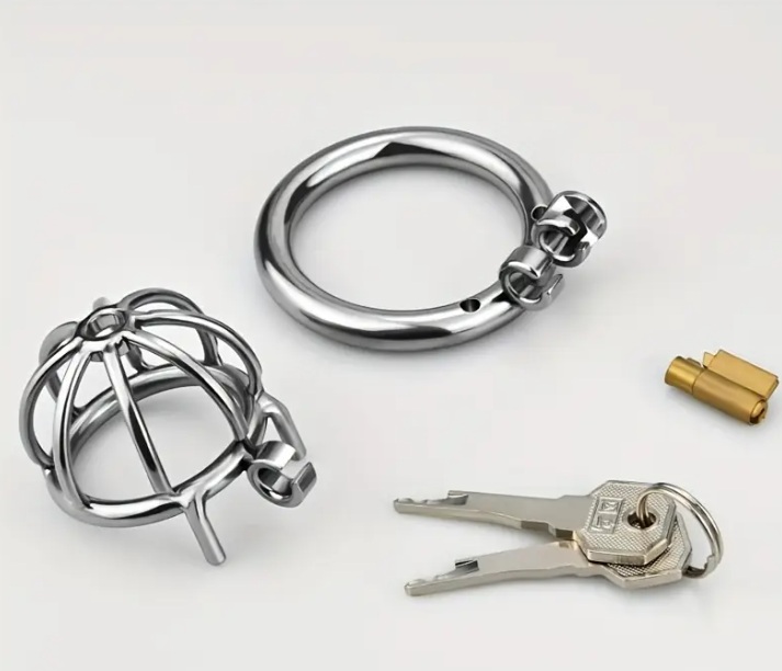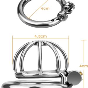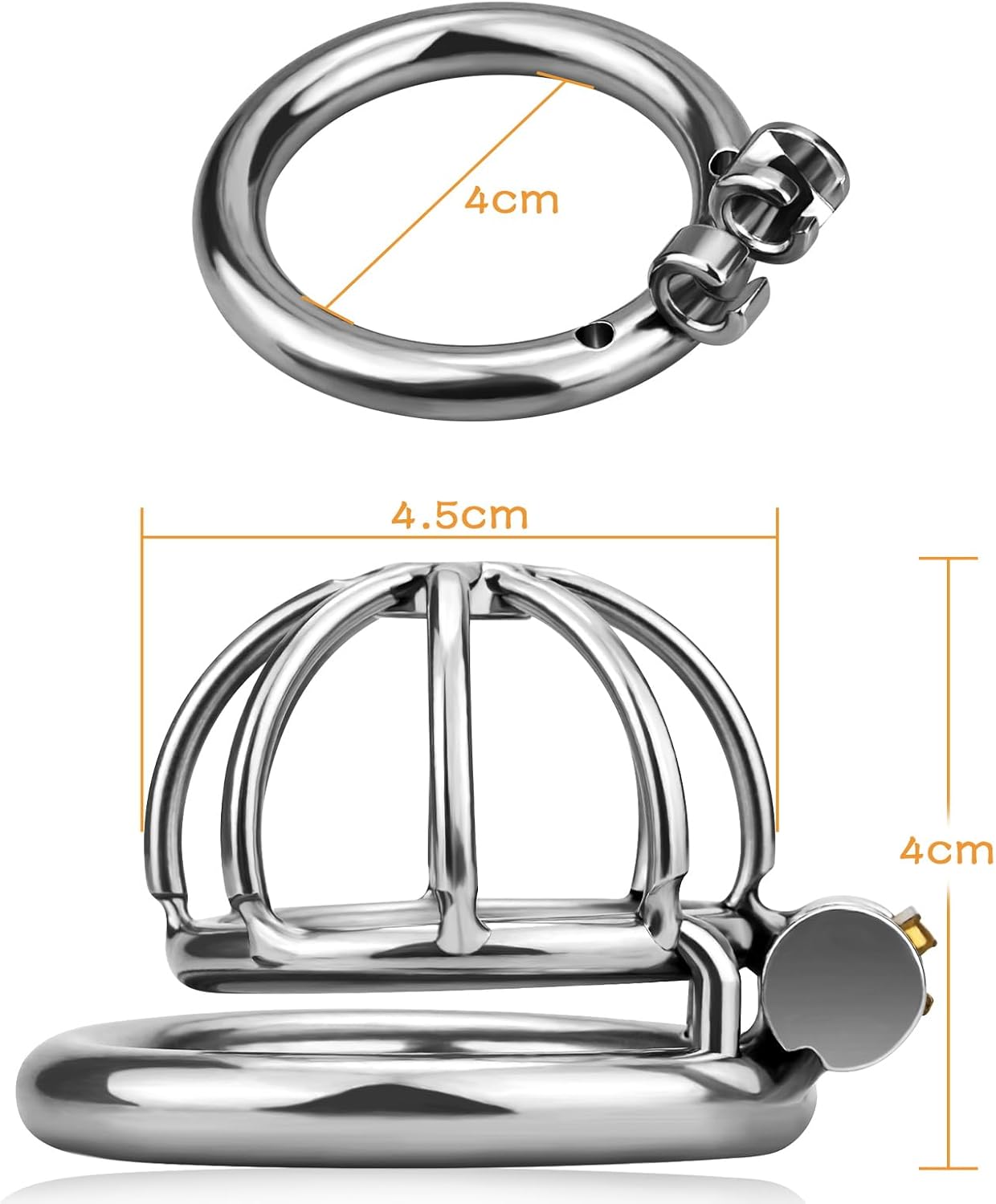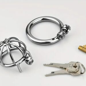 “This stainless-steel male chastity device is crafted from medical-grade, hypoallergenic metal for maximum hygiene and safety. The 4 cm base ring and open-bar cage allow airflow and simple cleaning, making it ideal for long-term chastity play, secure lockups, and discreet wear.”