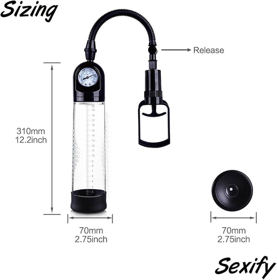 Unlike basic models, this pump includes a built-in manometer (pressure gauge) located at the top of the cylinder. This allows you to monitor the vacuum intensity precisely, ensuring you stay within a safe and comfortable pressure range to prevent tissue overstrain.