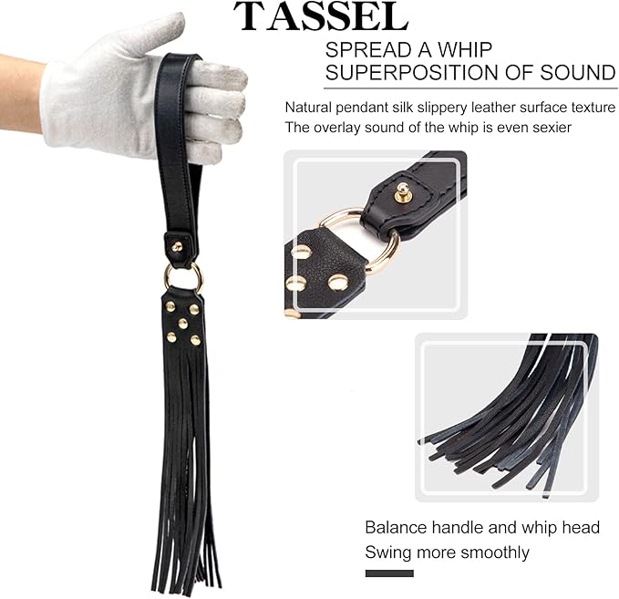 Sensory Play: Transition seamlessly from light deprivation with the mask to the rhythmic “superposition of sound” from the tassel whip.